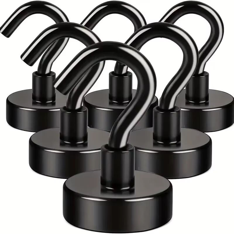 แม่เหล็กนีโอไดเมียมทรงพลัง เคลือบอีพ็อกซี่สีดำ ตะขอแม่เหล็กสำหรับห้องเรียน สำนักงาน ห้องครัว เรือสำราญ ตู้เย็น แขวนของ งอได้