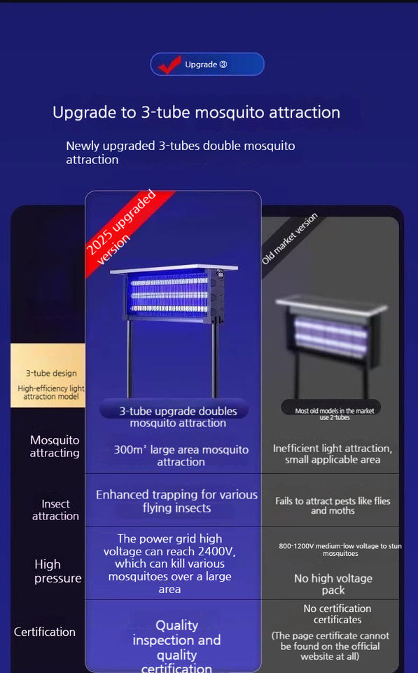 ที่ดักแมลงพลังงานแสงอาทิตย์กลางแจ้งพลังสูงพร้อมหลอด3หลอดและแสงสีขาวอบอุ่น2700K สำหรับลานตั้งแคมป์