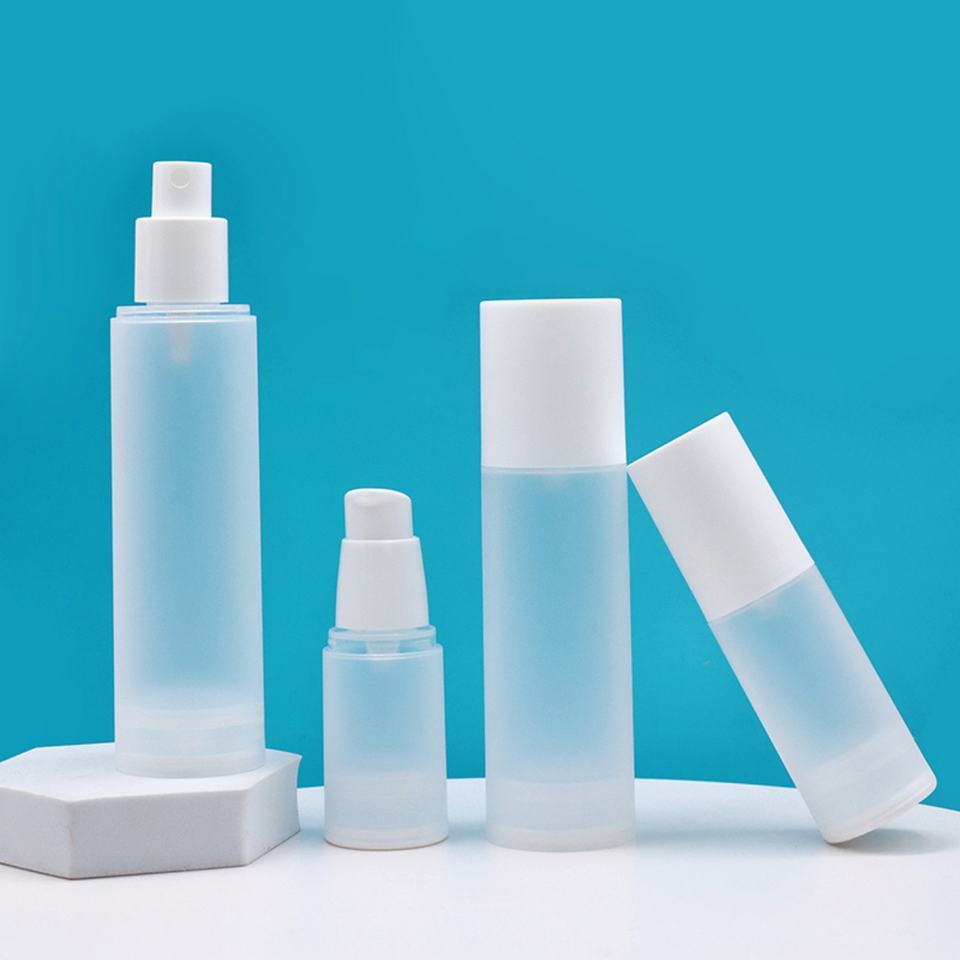 ขวดพลาสติกใสขุ่นแบบกดหัวปั๊มสุญญากาศสำหรับโลชั่นแบบพ่น ขวดบรรจุภัณฑ์เครื่องสำอางสำหรับเดินทาง