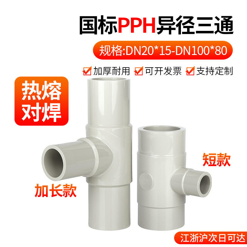 ข้อต่อท่อรูปตัวทีลดขนาด PPH ความหนา 3 มม. ทนต่อการกัดกร่อน แบบแนวนอน สำหรับระบบจ่ายน้ำ