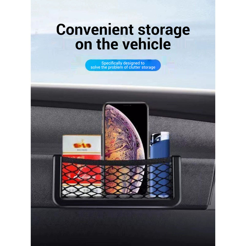 ที่เก็บของหลังเบาะรถยนต์แบบตาข่าย วัสดุ PP สีดำ สำหรับใส่โทรศัพท์มือถือ เหรียญ และบัตรเครดิต