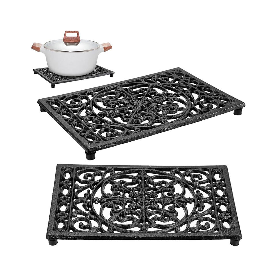 แผ่นรองจานเหล็กหล่อที่มีน้ำหนักเบาใช้งานได้จริงแผ่นรองสำหรับตกแต่งต้นไม้ในร่ม/กลางแจ้งแผ่นรองที่สะดวกสบายสำหรับห้องครัวบ้าน