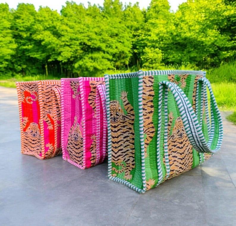 กระเป๋าผ้าฝ้ายลายควิลท์ที่ใช้งานได้จริง ออกแบบด้วยลายพิมพ์บล็อกมือลายดอกไม้ ให้ความทนทาน สะดวกสบาย และใช้งานได้ทุกวัน