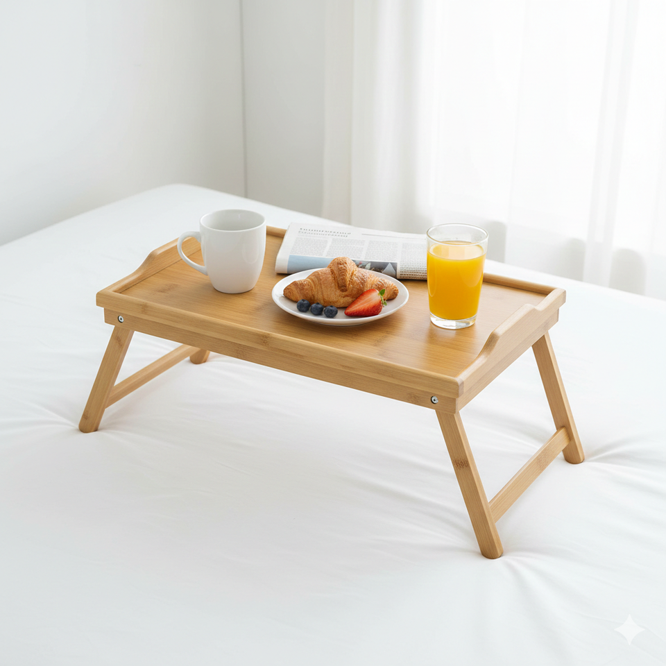 โต๊ะวางของแบบพับได้ทำจากไม้ ใช้สำหรับอาหารเช้าและวางแล็ปท็อป ผลิตในสหรัฐอเมริกา