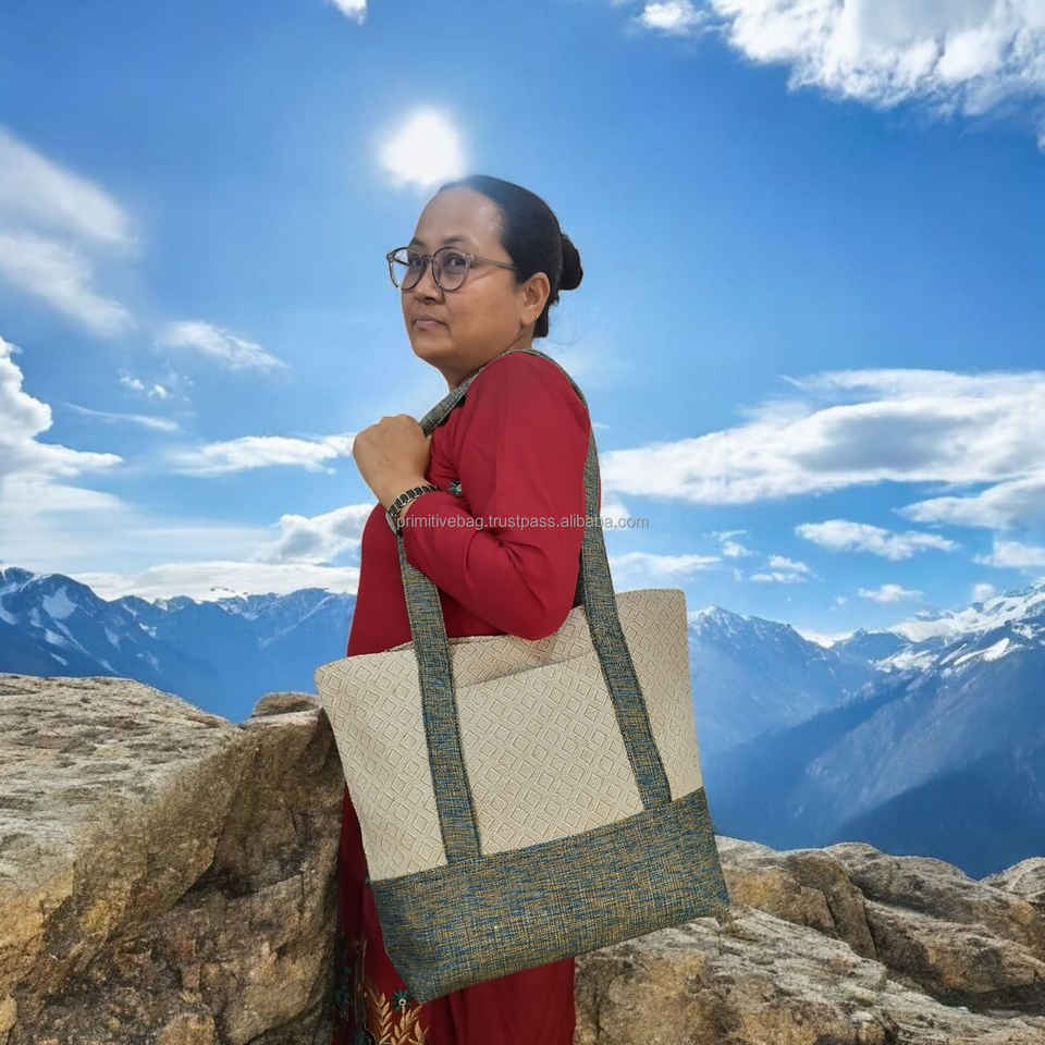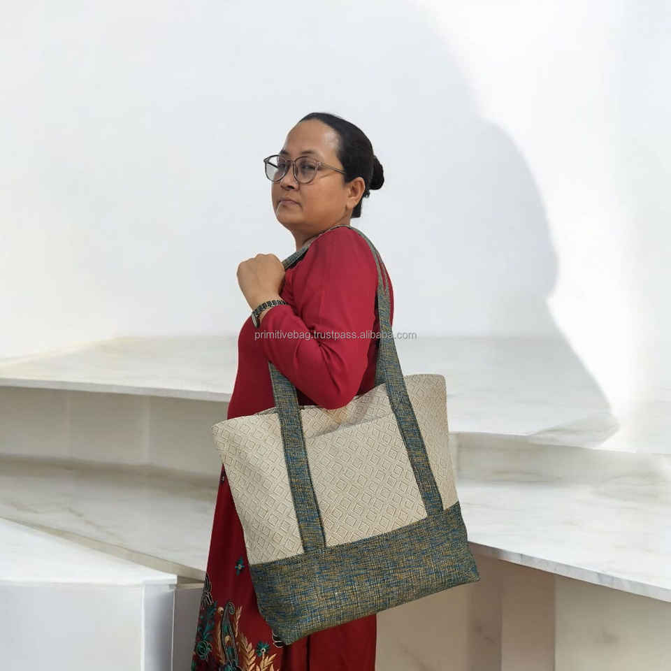 กระเป๋าโท้ทสำหรับผู้หญิงทันสมัยใช้งานได้จริงอย่างยั่งยืนซับในป่านและผ้าฝ้ายเปิดซิปและปิดด้วยเชือกรูดสำหรับใช้ในชีวิตประจำวัน