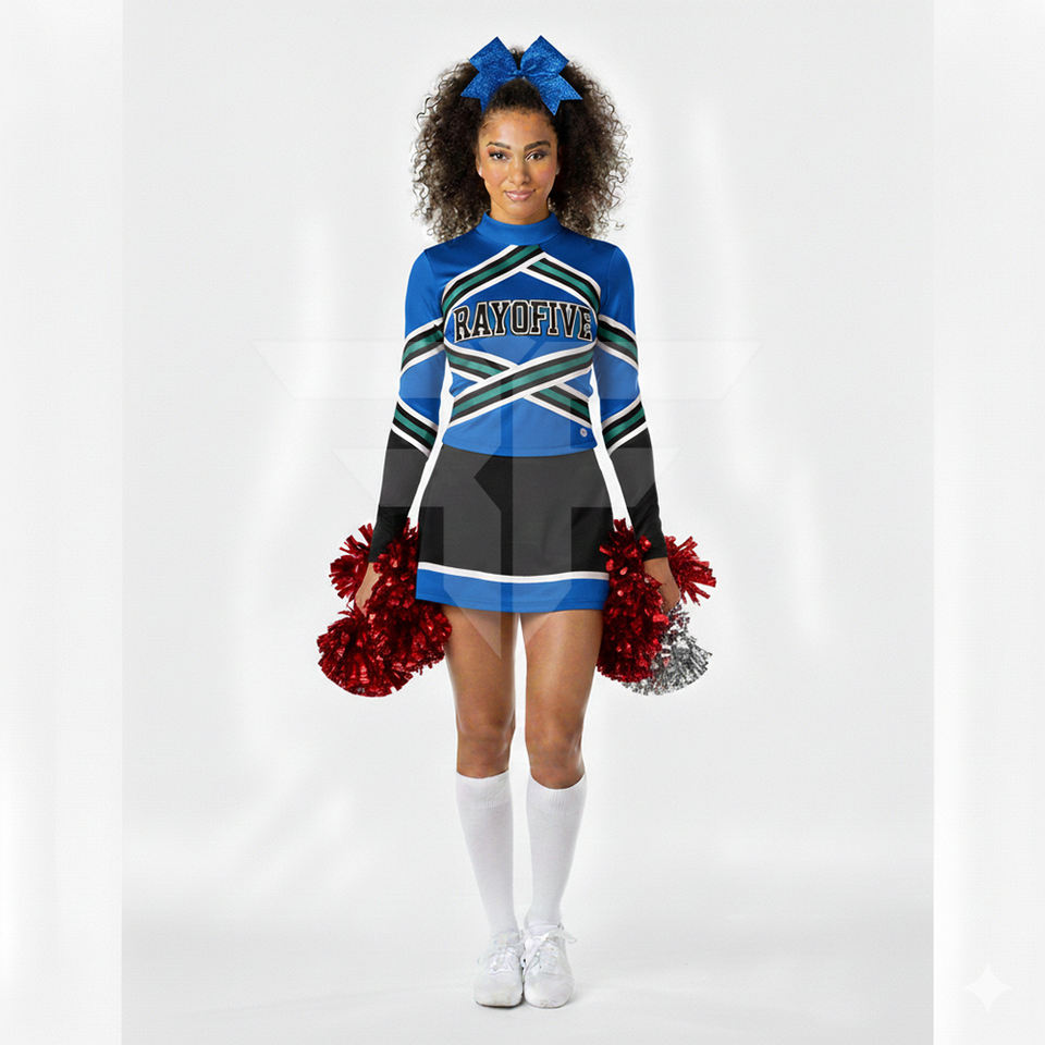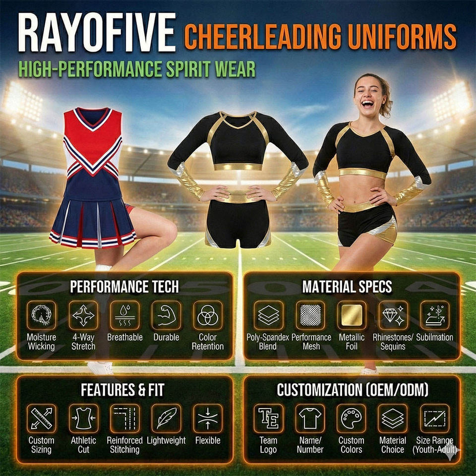 ชุดเชียร์ลีดเดอร์ผู้ใหญ่ขายส่ง โลโก้สั่งทำ ผ้าสแปนเด็กซ์ โพลีเอสเตอร์ 100% ชุดฝึกซ้อมข้างสนาม คุณภาพสูง