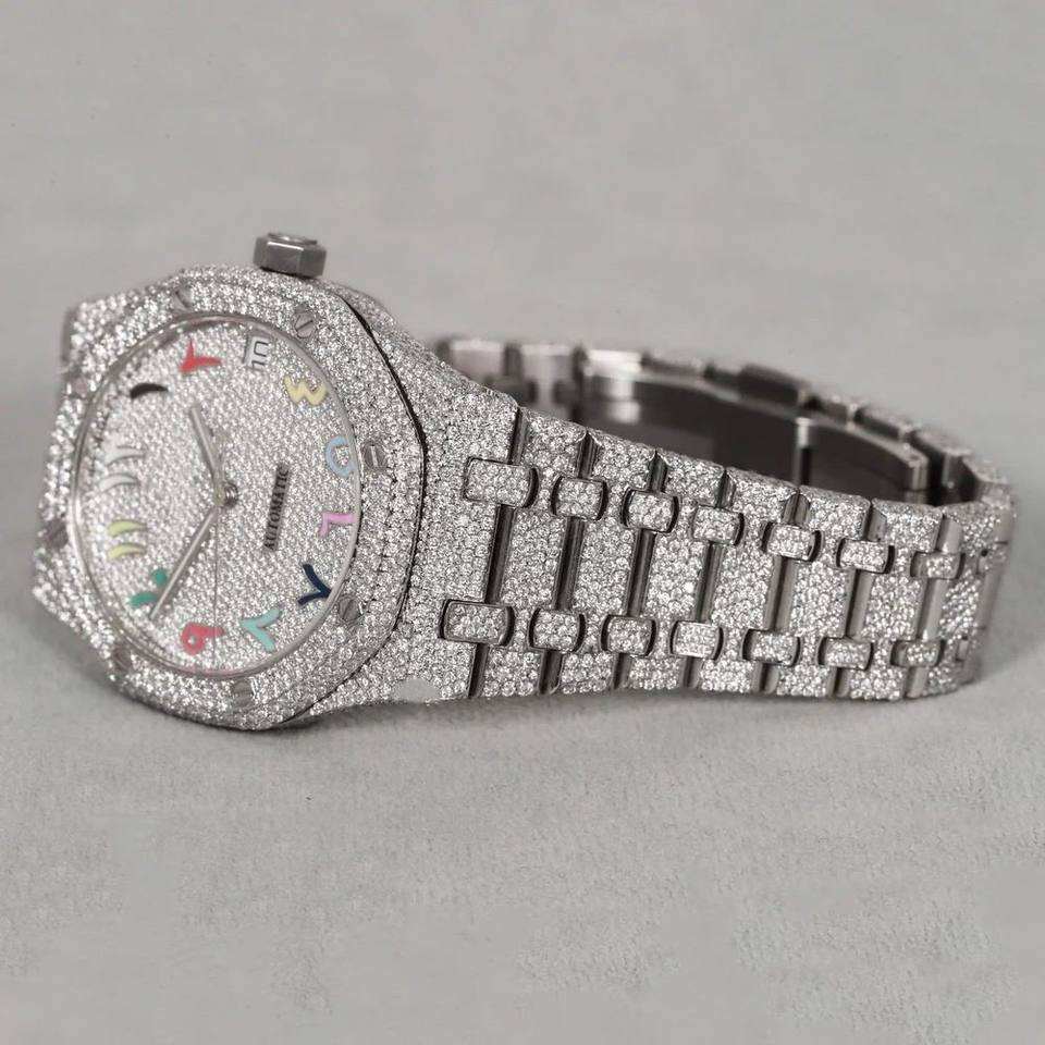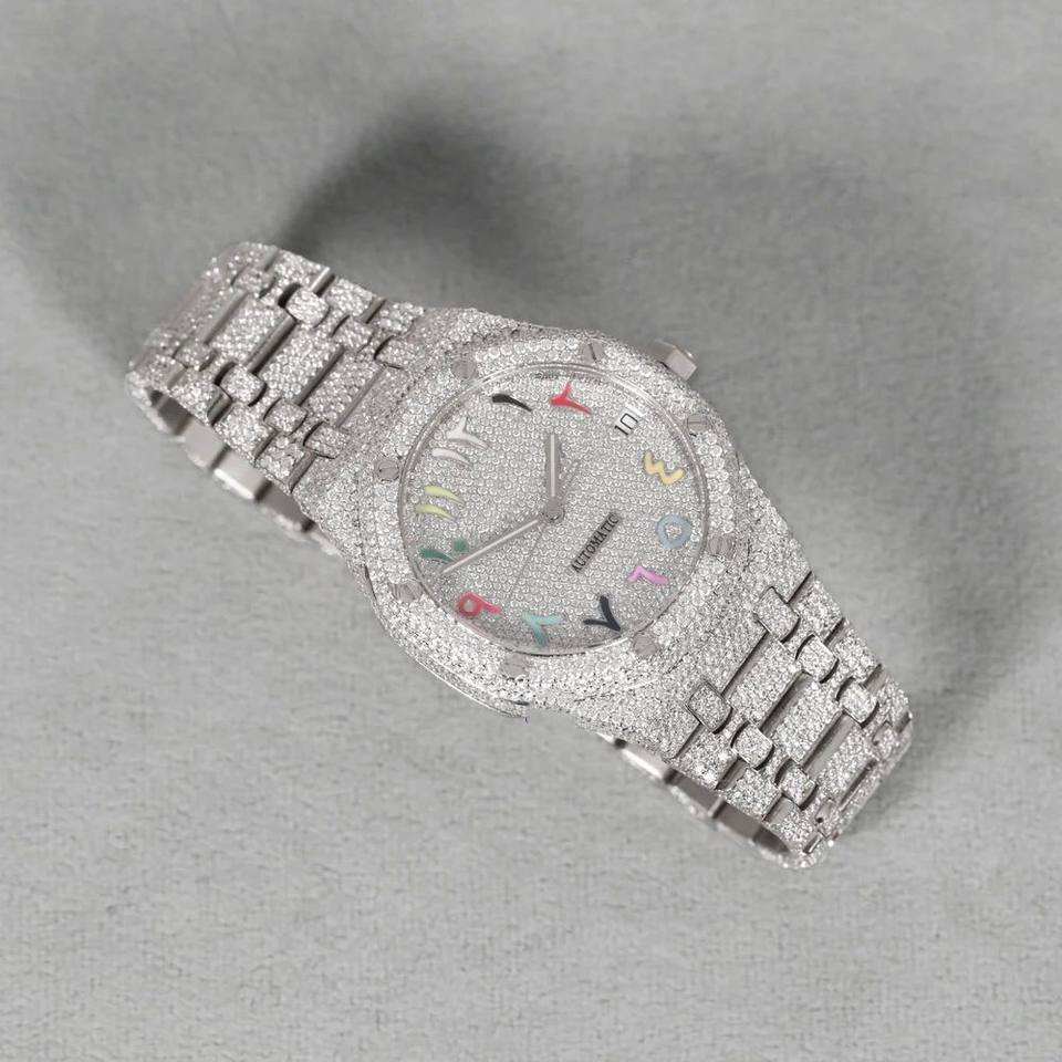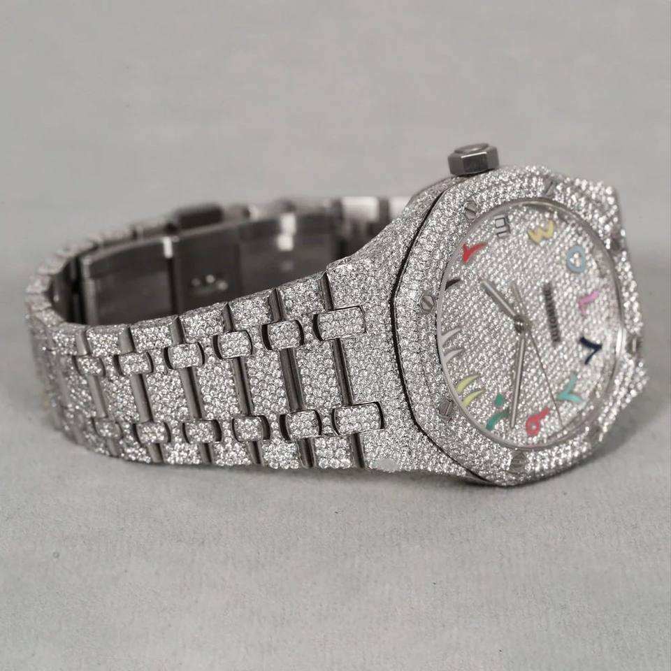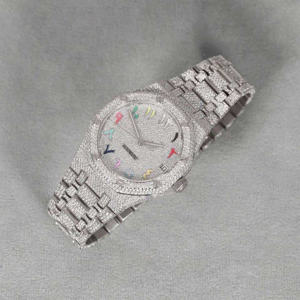 นาฬิกา Pragalbh ทูโทนโรสโกลด์ ประดับเพชรโมอิสซาไนต์เต็มเรือน ควอตซ์ หรูหรา สไตล์ฮิปฮอป น้ำหนักเบา ตัวเรือนสแตนเลส กระจกแซฟไฟร์ กันน้ำ