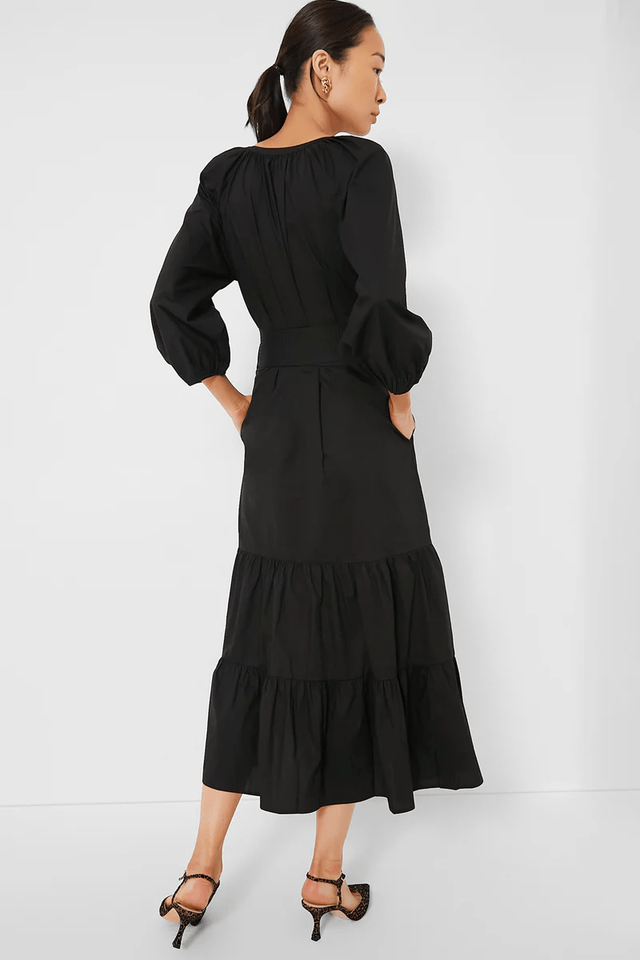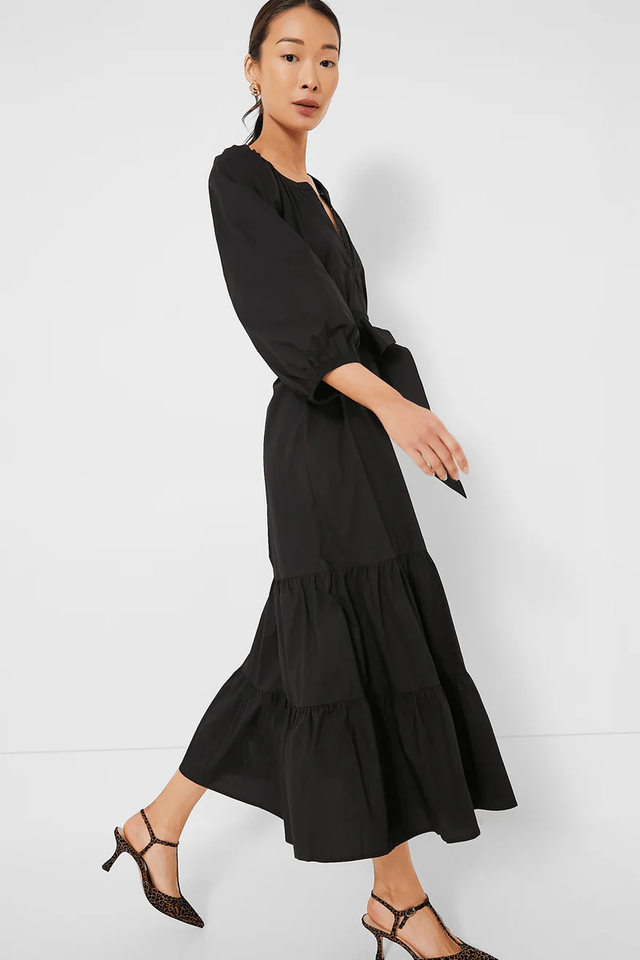 ชุดเดรสยาวคอวีผ้าฝ้าย 100% สำหรับผู้หญิง สีดำ สไตล์ลำลอง ชายกระโปรงบาน ทรงเอไลน์ ดีไซน์เรียบง่ายจาก Pranjal Exports