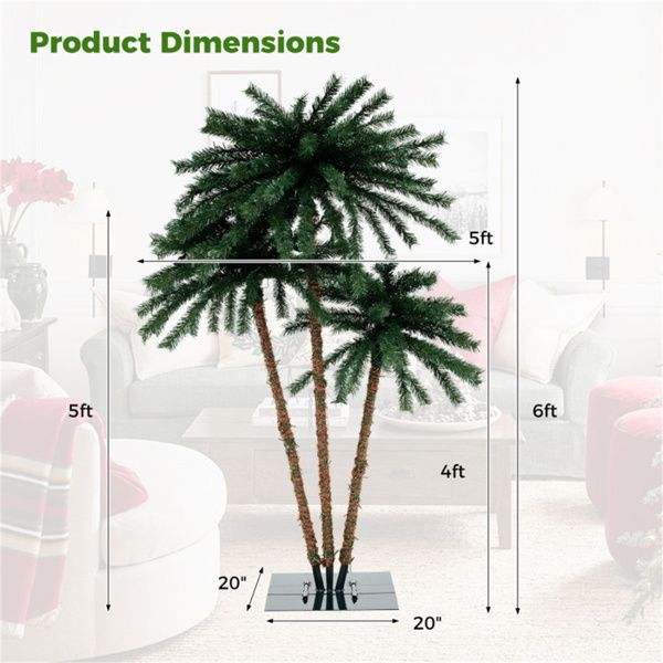 ชุดต้นปาล์มประดับไฟสำเร็จรูป 3 ชิ้น ความสูง 4/5/6 ฟุต ไฟ LED สีขาวอบอุ่น 930 ดวง ต้นไม้ประดิษฐ์ทำจาก PVC สีเขียว+โลหะ