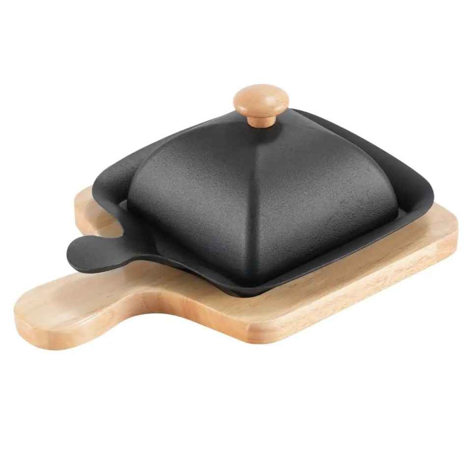 ฐานไม้: ฐานไม้ให้แพลตฟอร์มที่ปลอดภัยและมั่นคงสำหรับจานสิซเซิลร้อน ปกป้องพื้นผิวและช่วยให้การจัดการง่ายขึ้น