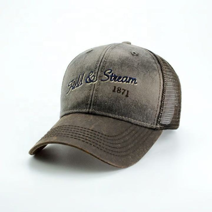 หมวกแก๊ปทรงทรัคเกอร์ผู้ชาย ผ่านการซักล่วงหน้า ผลิตโดยโรงงาน OEM โดยตรง ปรับขนาดได้ ขายส่ง หมวกตาข่าย พร้อมโลโก้ส่วนตัว สำหรับแบรนด์ค้าปลีกและงานอีเว้นท์