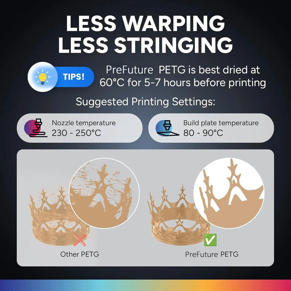 เส้นใยเครื่องพิมพ์3D prefuture PETG 1.75มม. ม้วนด้ายคงทน1กก. (2.2lbs) เส้นใยเหนียวแข็งแรงมิติ