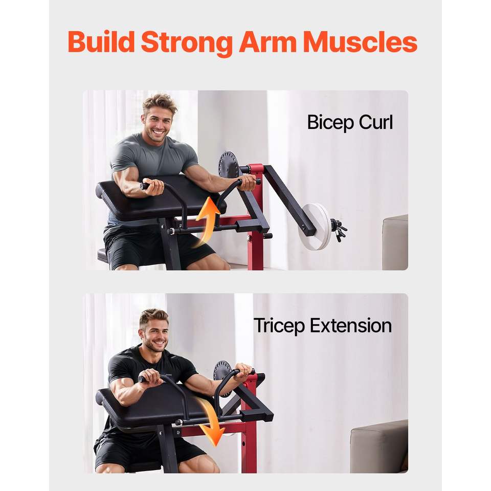 เครื่องบริหารกล้ามเนื้อ Preacher Curl 2-in-1 สำหรับบริหารไบเซ็ปและไทรเซ็ปแบบนั่ง ฝึกความแข็งแรงของแขนแบบแยกส่วน แบบใส่แผ่นน้ำหนัก