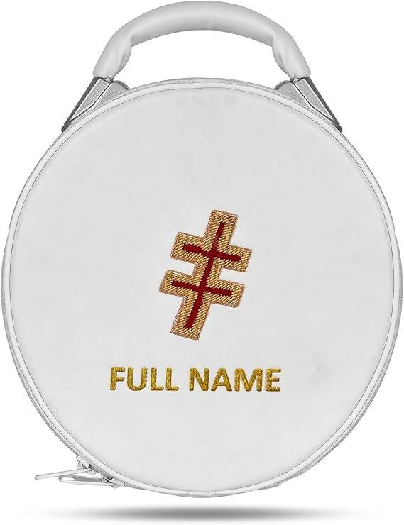 กล่องใส่หมวกทรงคราวน์ของอัศวินเทมพลาร์ - หนังเทียมสีขาว พร้อมงานปักด้วยไหมทอง