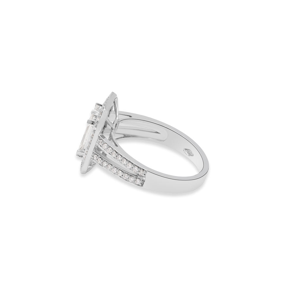 แหวนหมั้นทำด้วยมือสีขาวทอง18K อัญมณีเพชรล้ำค่าที่มีการตั้งค่ากรอบของ IGI สำหรับงานแต่งงาน