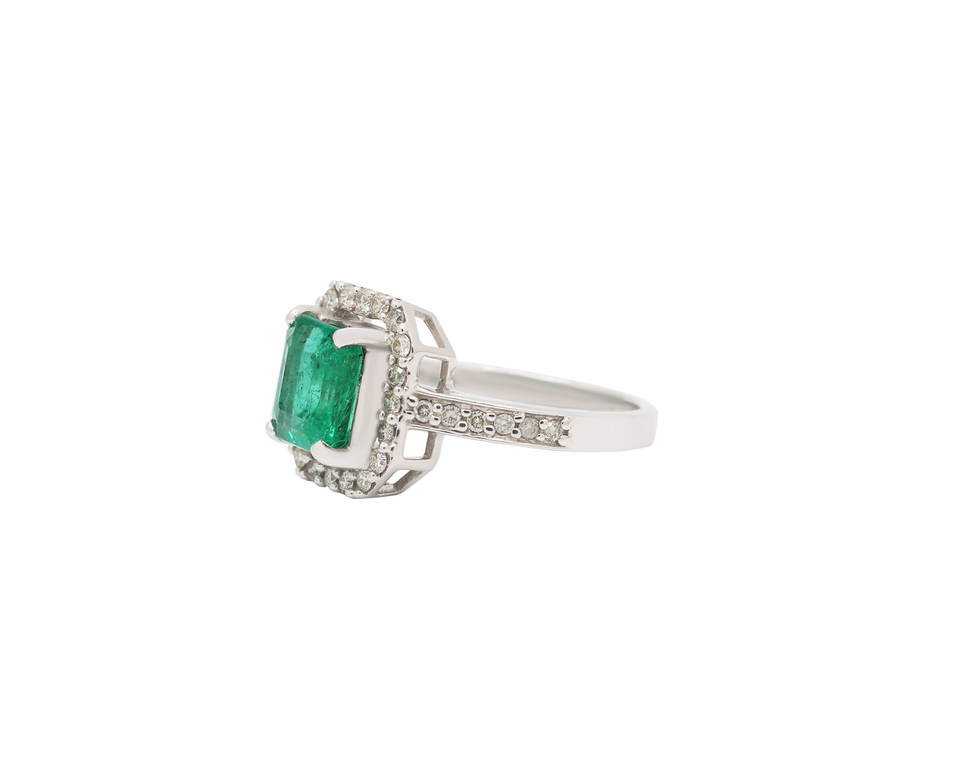 แหวนแต่งงานและงานหมั้นของผู้หญิงคลาสสิกทำด้วยมือด้วยอัญมณีมรกต14K ตัวเรือนทองคำสีขาวทึบได้รับการรับรอง