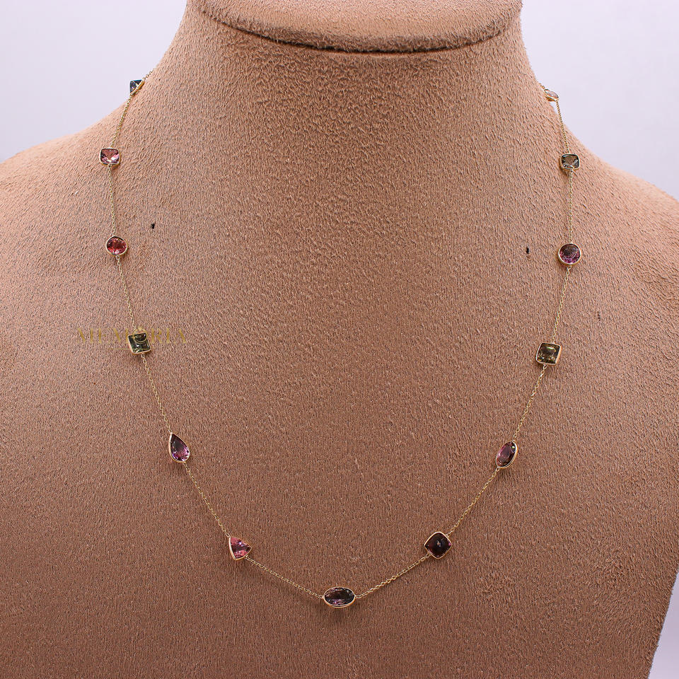สร้อยคอทำด้วยมือของผู้หญิงอัญมณีทัวร์มาลีนหลากสี18K สีเหลืองทองแบบคลาสสิกลิงก์สำหรับงานเลี้ยงงานแต่งงาน