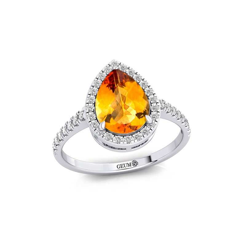 แหวนพลอยซิทรีนธรรมชาติอันมีค่าพร้อมคลัสเตอร์เพชรธรรมชาติกับแหวนทอง14K แข็งแบบคลาสสิกของขวัญแหวนสำหรับเธอ