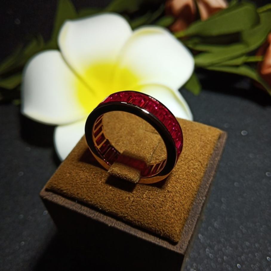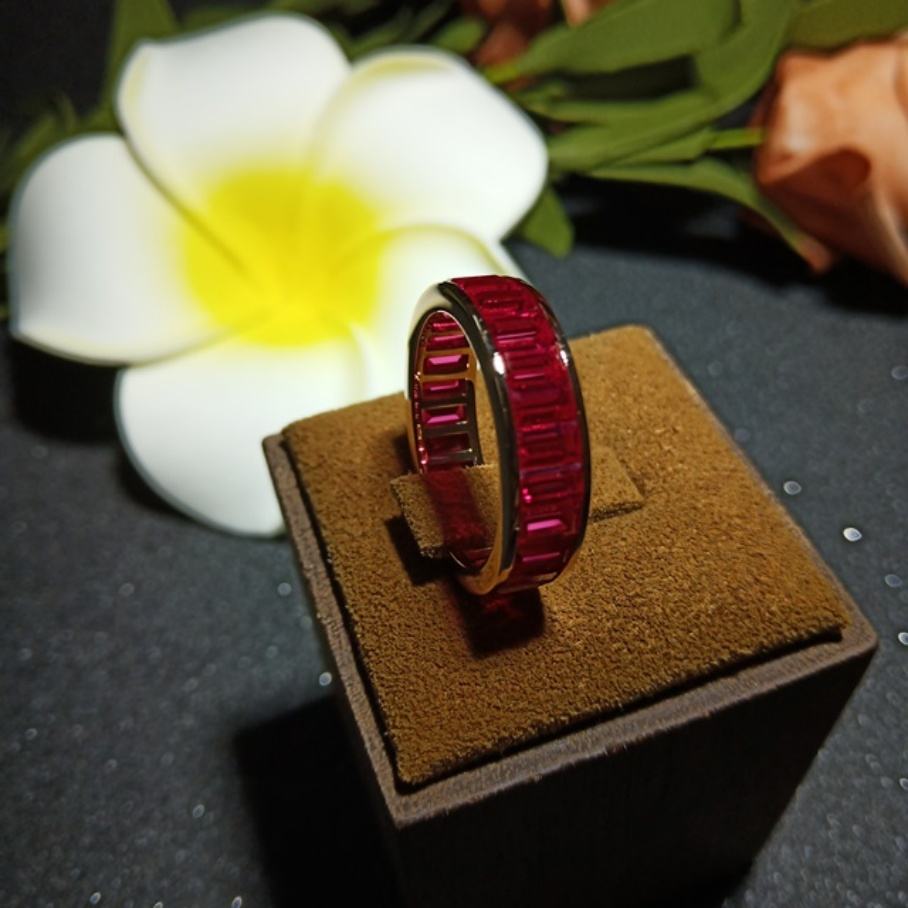 ชื่อ:แหวนแฮนด์เมด ประดับด้วยทับทิมสังเคราะห์ทรงบาแกตต์ เครื่องประดับชั้นเลิศ