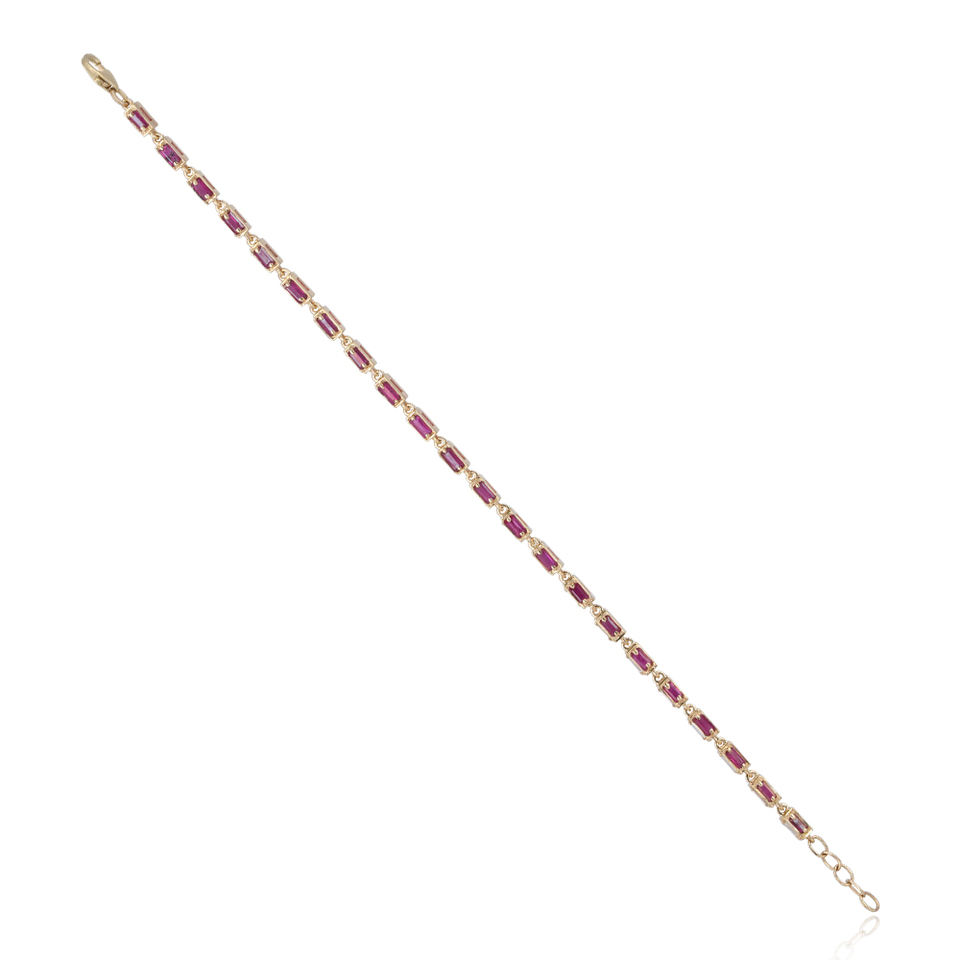 อัญมณีทับทิมมีค่าบาแกตต์ธรรมชาติเพชร14K สร้อยข้อมือเทนนิสทำด้วยมือสีเหลืองทองเครื่องประดับที่ดีขายส่ง