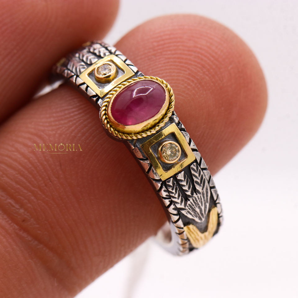ทับทิมประดับ925เพชรและแหวนทอง18K