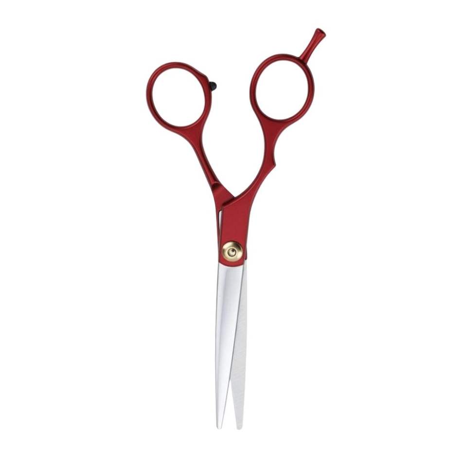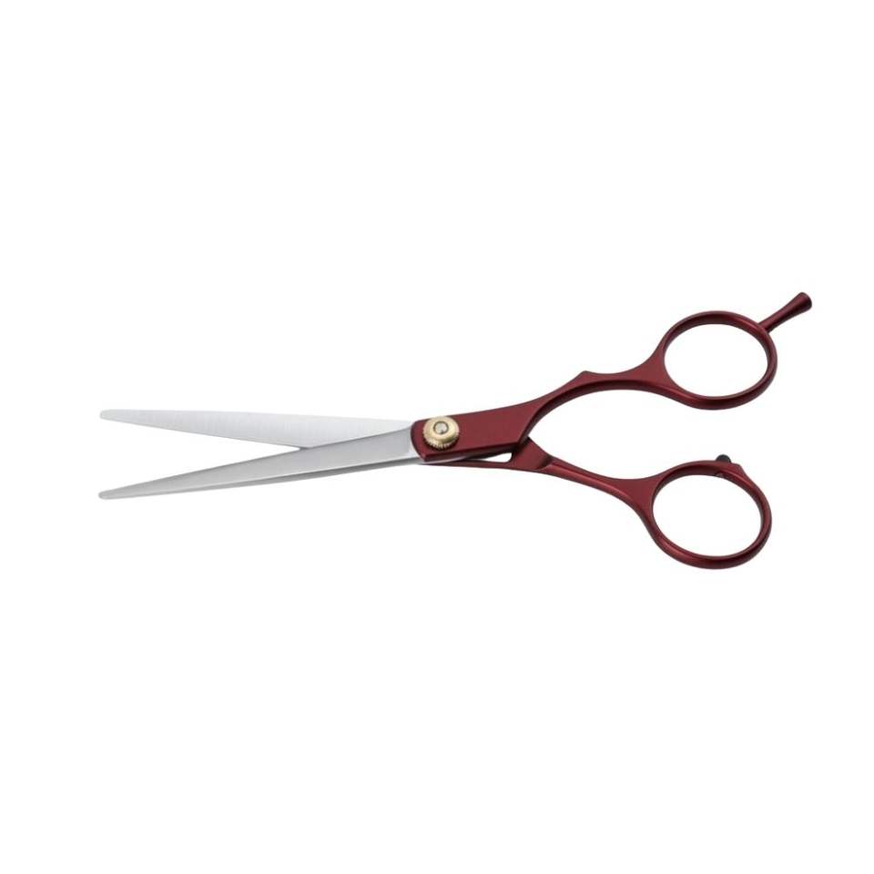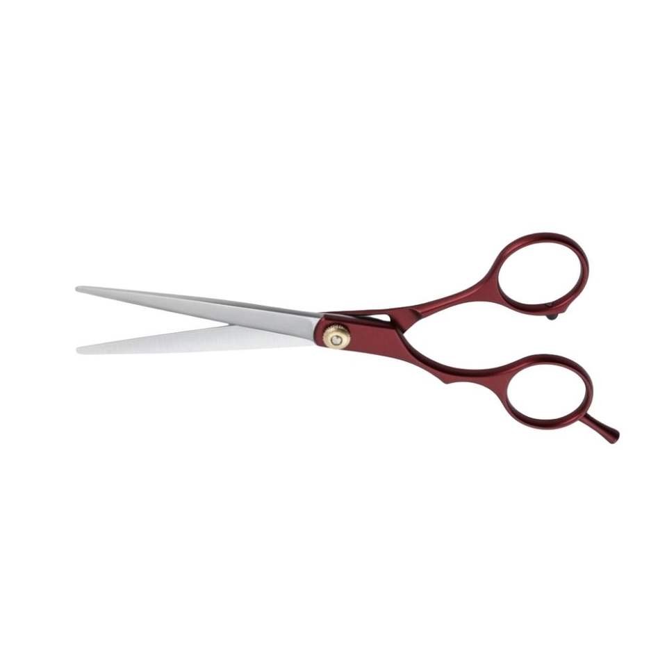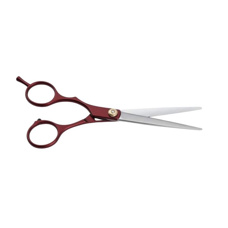กรรไกรตัดผมมืออาชีพขนาด 5.5 นิ้ว สีแดงเลือดหมู ผลิตจากเหล็กญี่ปุ่น สำหรับตัดแต่งทรงผมอย่างละเอียด