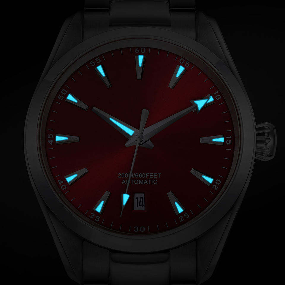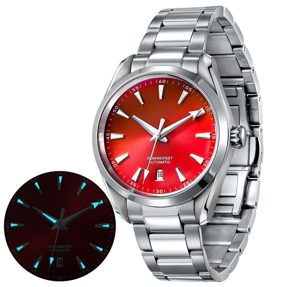 นาฬิกาข้อมือกลไกตัวเรือนสแตนเลสสตีลคุณภาพสูง ระบบกลไกแบบมืออาชีพ ชุดเฟืองละเอียด ทนน้ำได้ 20ATM พร้อมหน้าปัดแสดงผล
