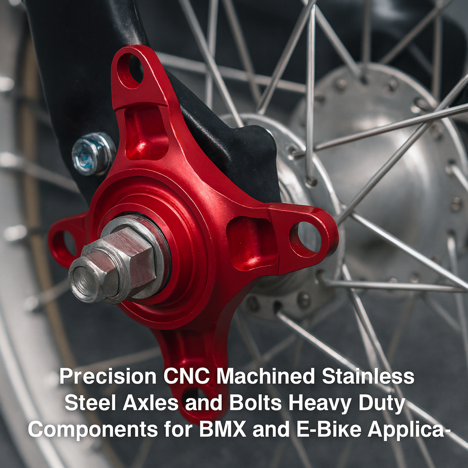 สลักเกลียวเพลาเหล็กสแตนเลสกลึงด้วยความแม่นยำส่วนประกอบหนักพร้อมลวด EDM และเจาะสำหรับการใช้งาน BMX E-BIKE