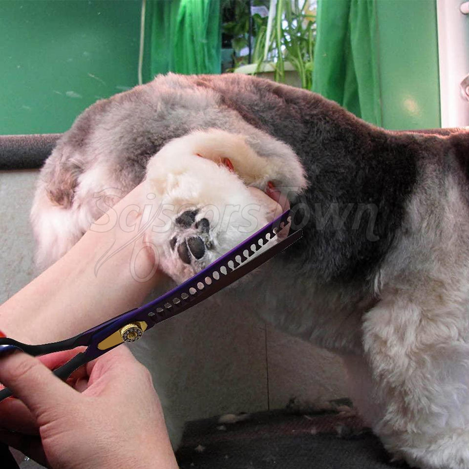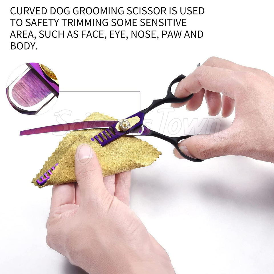 กรรไกรตัดขนสุนัขแบบบางแม่นยำทำจากสแตนเลสเพื่อการตัดแต่งผมที่ปลอดภัยและอ่อนโยน