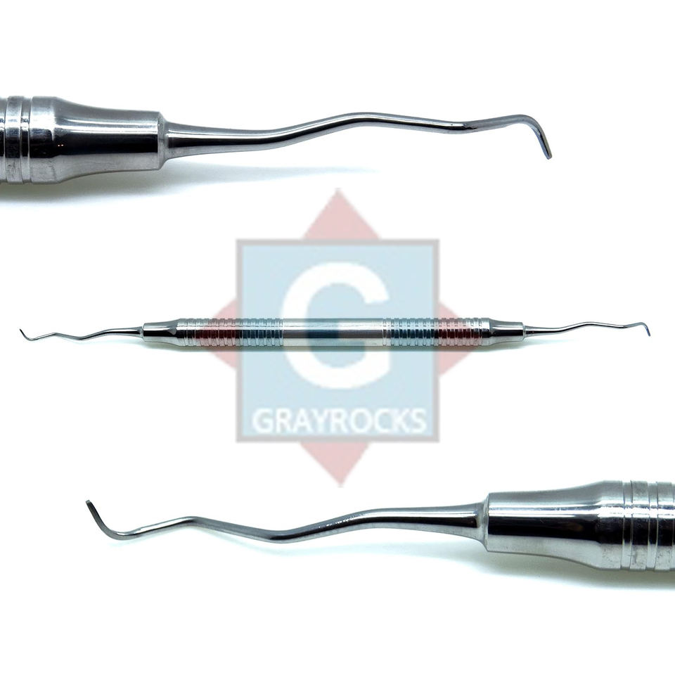 ที่ขูดหินปูนแบบสองด้านความแม่นยำเครื่องมือทันตกรรมแบบแมนนวลทำจากเหล็กและวัสดุพลาสติก