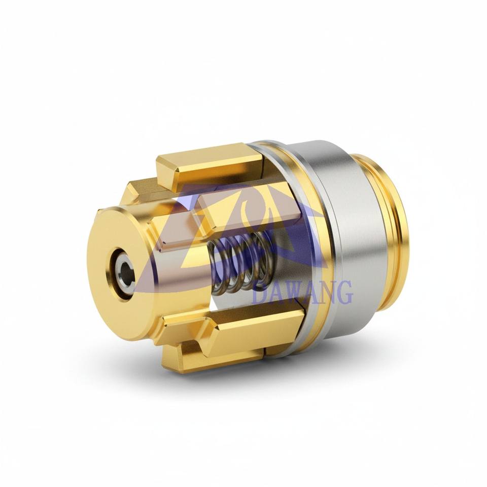 ชิ้นส่วนเชื่อมต่อการชาร์จสแตนเลสที่ผลิตด้วยเครื่องจักรความแม่นยำสูง ชิ้นส่วน CNC ชุบทอง ด้วยกระบวนการตัดลวดด้วยไฟฟ้า (Wire EDM) และการกลึง 5 แกน