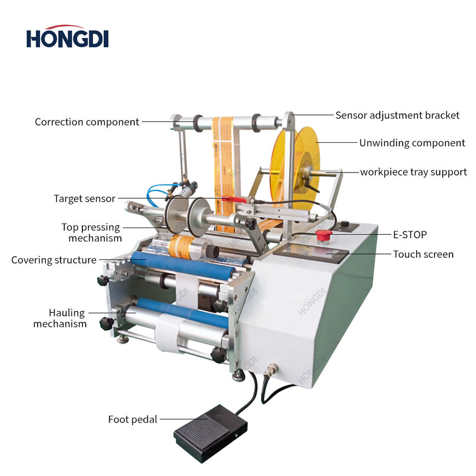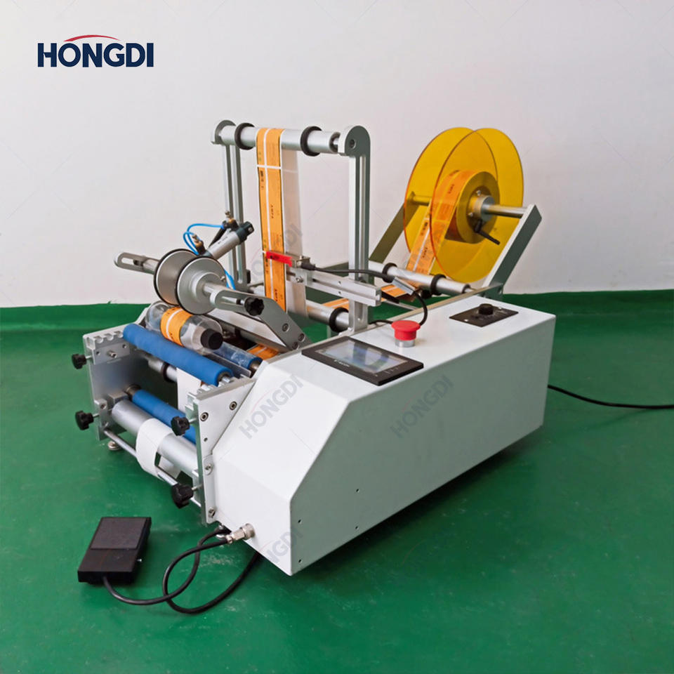 เครื่องติดฉลากอัตโนมัติขนาดเล็กความแม่นยำสูงสำหรับขวดน้ำหอม ภาชนะบรรจุน้ำมันหอมระเหย กระป๋องแก้ว/โลหะ บรรจุภัณฑ์เครื่องสำอาง