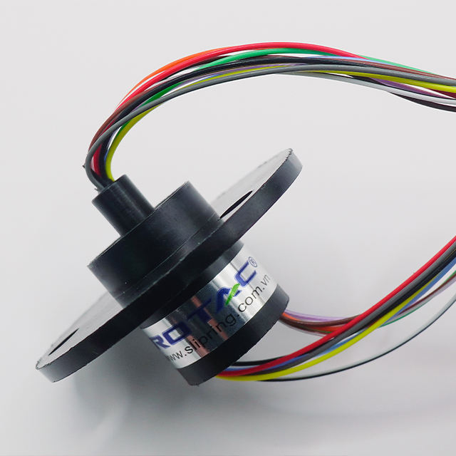 สลิปริงขนาดเล็กความแม่นยำสูง 12 วงจร 2A แบบแปรงสัมผัส ขนาดเส้นผ่านศูนย์กลางภายนอก 18 มม. ขั้วต่อแบบหมุนขนาดกะทัดรัดสำหรับ CNC และหุ่นยนต์ขนาดเล็ก