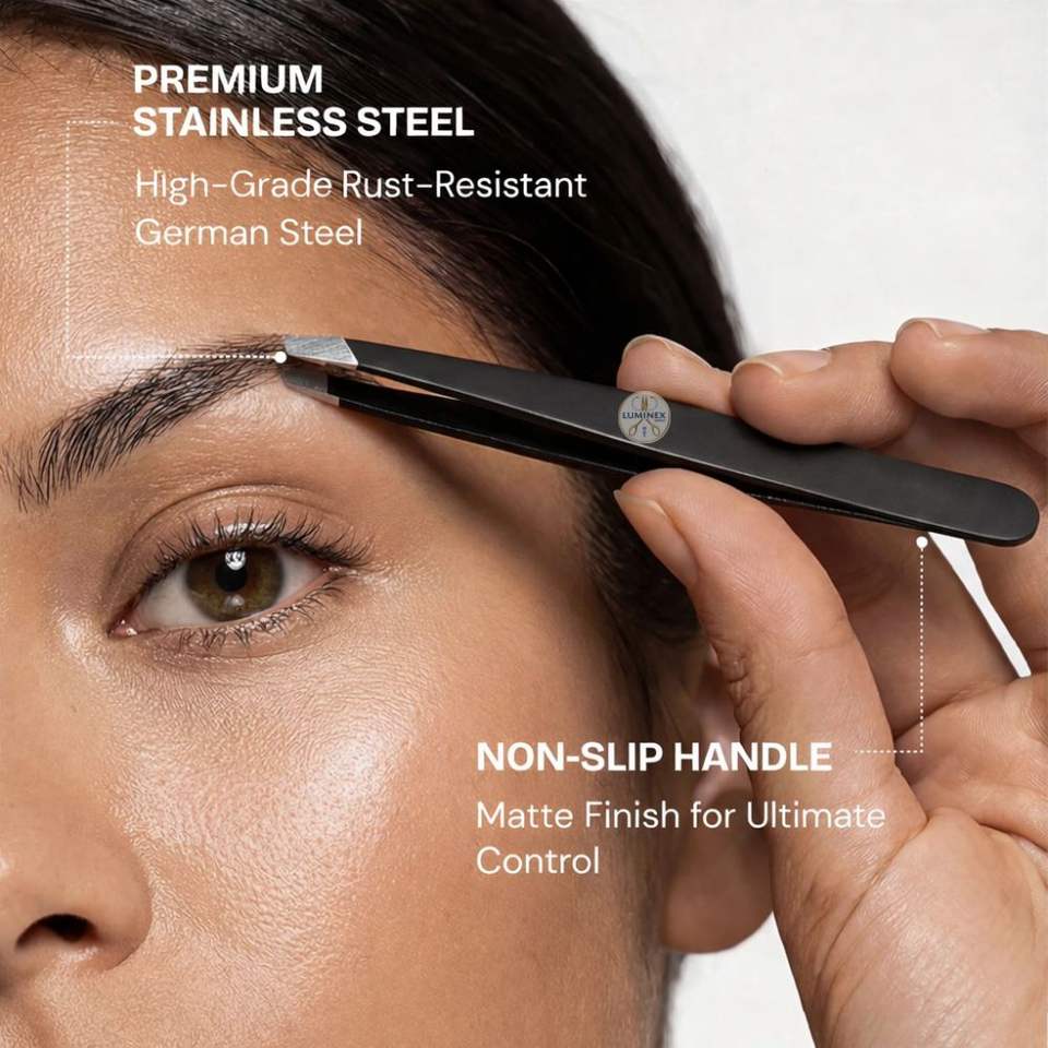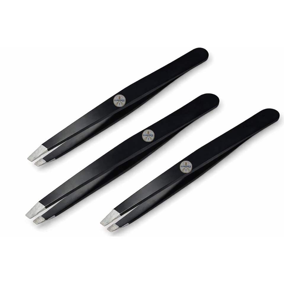 แหนบปลายเฉียงคมกริบสำหรับมืออาชีพ ด้ามจับพลาสติก สำหรับผู้หญิง กำจัดขนบนใบหน้า ผลิตจากเหล็กกล้าไร้สนิมเยอรมัน น้ำหนักเบา สีดำ