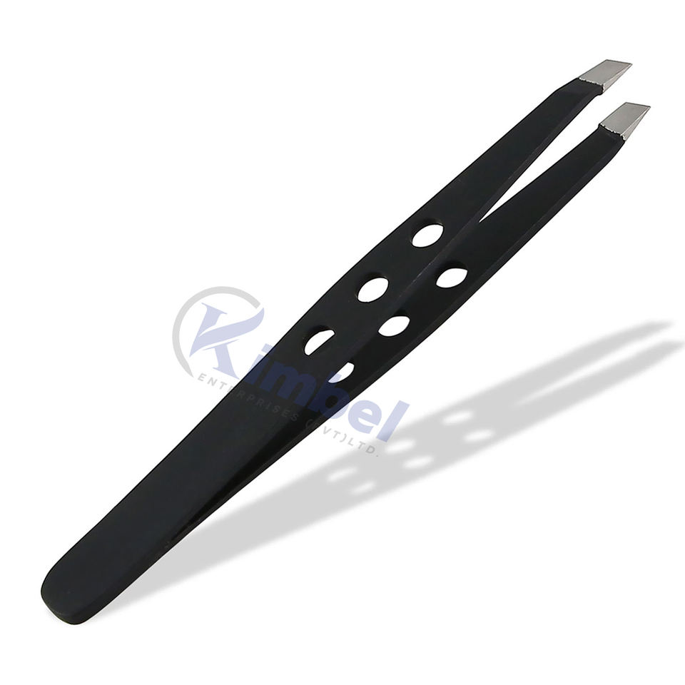 แหนบถอนขนคิ้วสีดำปลายเอียงที่มีความแม่นยำรับประกันคุณภาพ