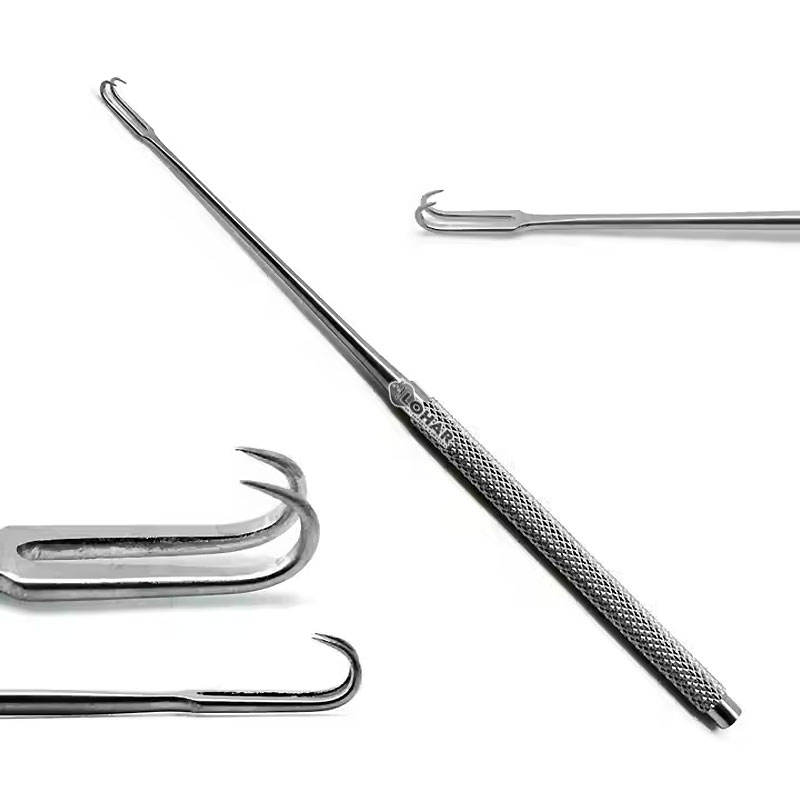 เครื่องมือดึงกลับที่ทำจากความแม่นยำเครื่องมือที่ทำจากเหล็กสแตนเลสตะขอสองชั้นรูปตัวโอเซพสกิน2มม. ปลายแหลม6.25