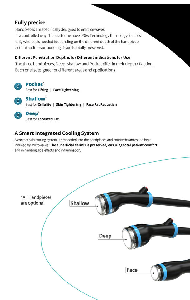 เทคโนโลยี Precision-gigawave 4 ควบคุมคลื่นไมโครเวฟ 2.45 กิกะเฮิรตซ์ Coolwaves สำหรับใบหน้าและร่างกาย เครื่องกระชับสัดส่วนและยกกระชับแบบไม่ต้องผ่าตัด