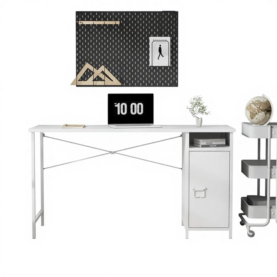 โต๊ะคอมพิวเตอร์เหล็ก Predo OD50701 พร้อมตู้เก็บของบานเดี่ยว โต๊ะทำงานโลหะทันสมัย ประกอบง่าย พร้อมที่เก็บของ