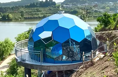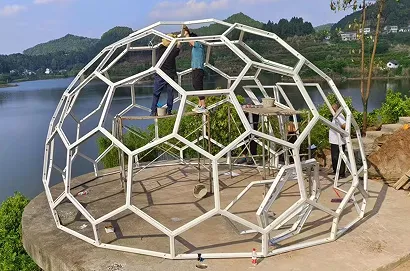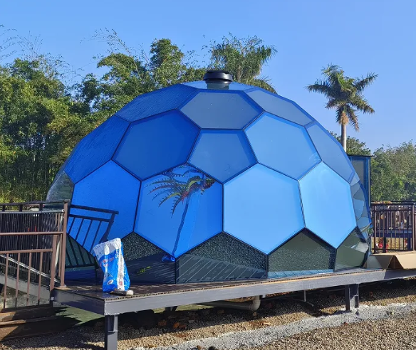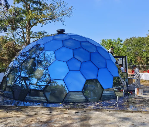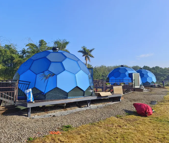 Prefab บ้านรังผึ้งทรงโดมแก้วหกเหลี่ยมสำหรับโรงแรมแกลมปิ้ง