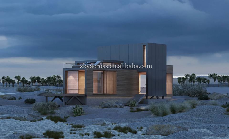 Prefab Sea Chalet โรงแรมแบบพกพา, บ้านนอกบ้านบ้านจิ๋ว2ชั้นกระท่อมกระท่อมกระท่อมแบบแยกส่วนสำหรับโรงแรมรีสอร์ท