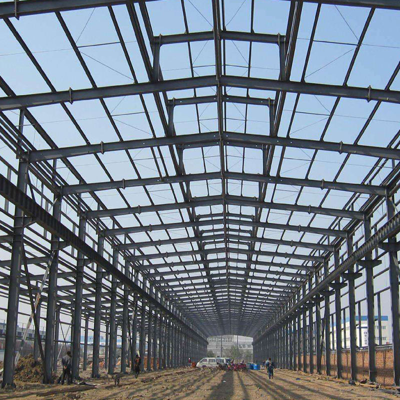 กรอบโครงสร้างเหล็กอ่อน Q345เกรดอลูมิเนียมสำหรับโกดังเหล็กทาสีแบบกำหนดเองการเชื่อมการตัดดัดรวม