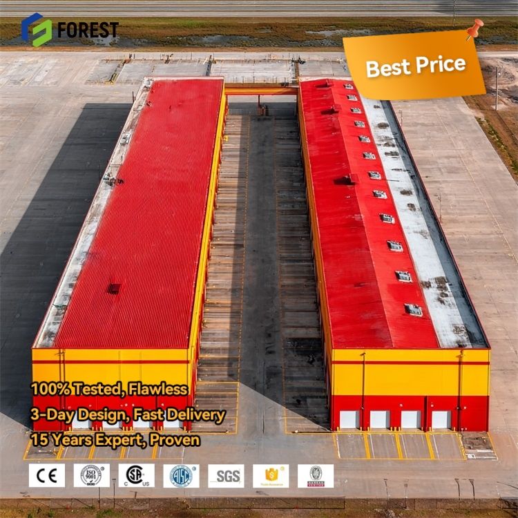 อาคารคลังสินค้าโครงสร้างเหล็กสำเร็จรูปสำหรับสำนักงานจัดเก็บข้อมูลอุตสาหกรรมและโรงเรียนใช้ผ่านการรับรอง CE รับประกัน5ปี