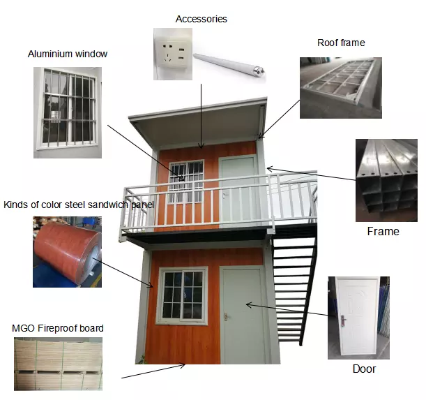 บ้านสำเร็จรูป2ที่เก็บไว้สำหรับครอบครัวที่อยู่อาศัยแบบโมดูลาร์ทำโดยบ้านคอนเทนเนอร์แพ็คแบน