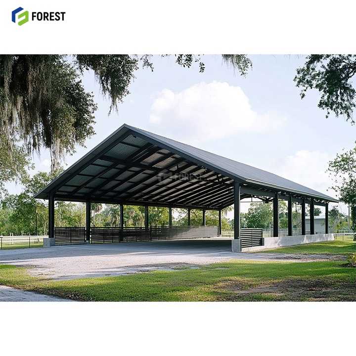 โครงสร้างเหล็กสำเร็จรูปสำหรับสนามขี่ม้า งานเชื่อมหนัก แบบมีหลังคาคลุม