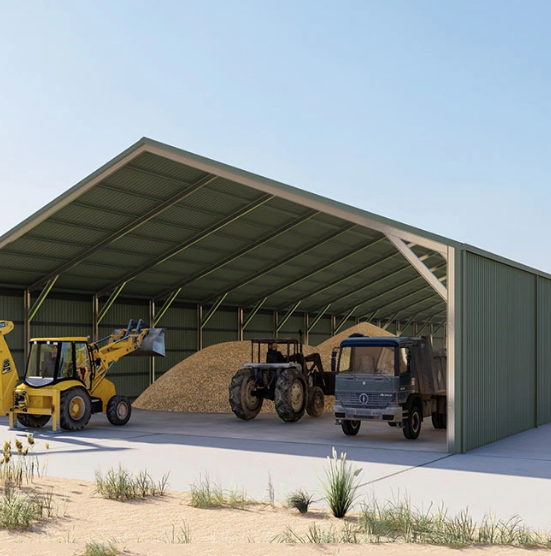 โซลูชันจัดเก็บข้อมูลทางการเกษตรโลหะสำเร็จรูปการออกแบบโกดังเก็บหญ้าแห้งสำหรับฟาร์ม