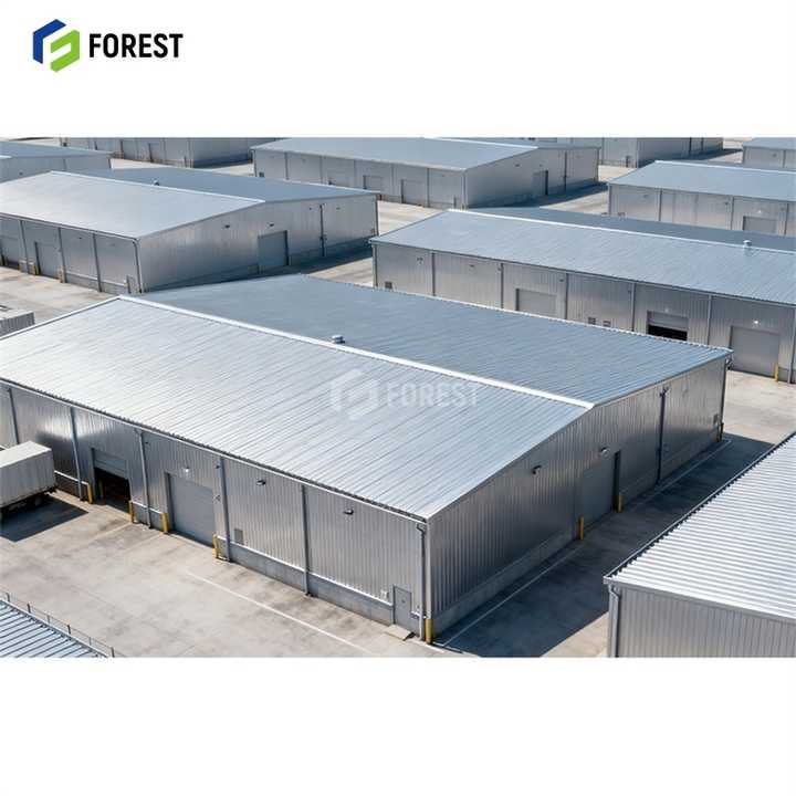โครงสร้างเหล็กสำเร็จรูปบริการเชื่อมอาคารโรงงานขนาดใหญ่การก่อสร้างโลหะที่ทันสมัยสำหรับโรงจอดรถโรงจอดรถ