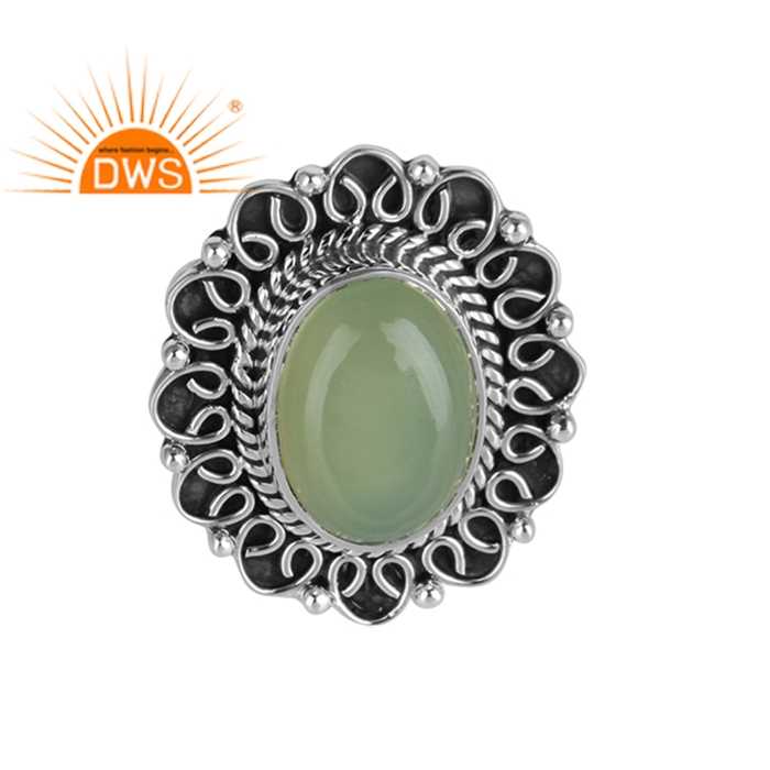 Prehnite Chalcedony พลอยแหวนอ้วนผู้ผลิตเครื่องประดับอินเดียทำด้วยมือ925เงินออกแบบแหวนผู้ค้าส่ง