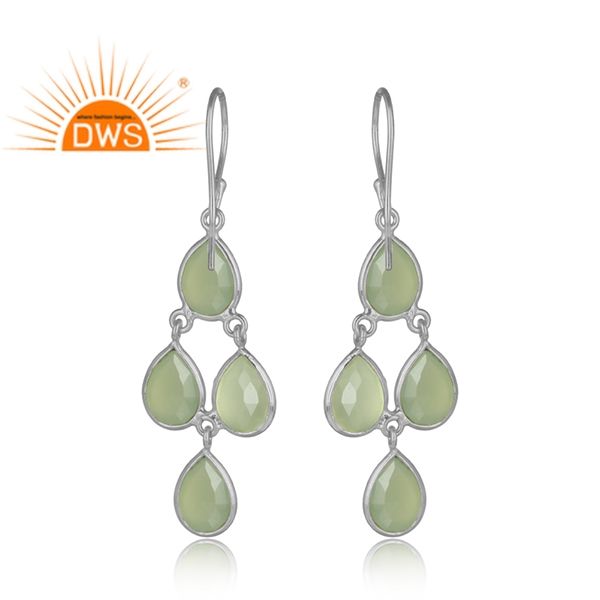 Prehnite Chalcedony Gemstone Earrings Designer 925 Sterling Fine Silver Bezel Set Dangle Earrings Supplier Jewelry