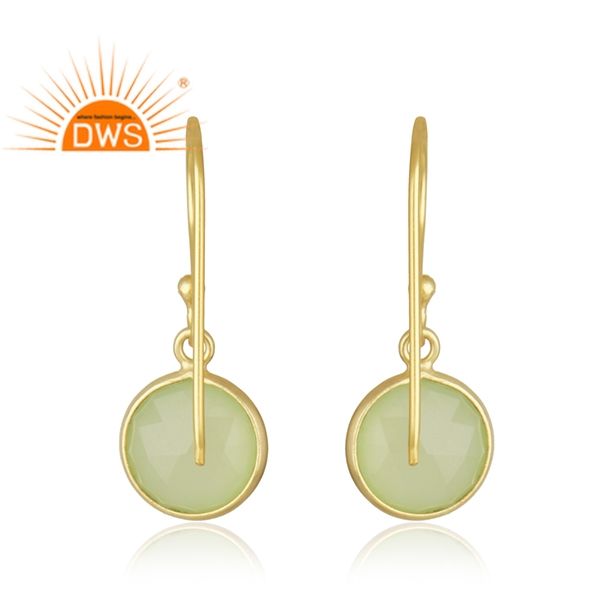 ต่างหูพลอยเพรนไนต์ คาลเซโดนี สไตล์อินเดีย ชุบทอง เงินแท้ 925 แบบติดตั้งขอบเพชร ต่างหูแบบห้อย ผู้ผลิตเครื่องประดับ