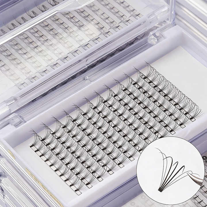 ขนตาปลอมสำเร็จรูป 10D 12D สีดำเข้ม แบบก้านสั้น ขนตาปลอมแบบพัด ขนตาปลอมแบบนุ่ม